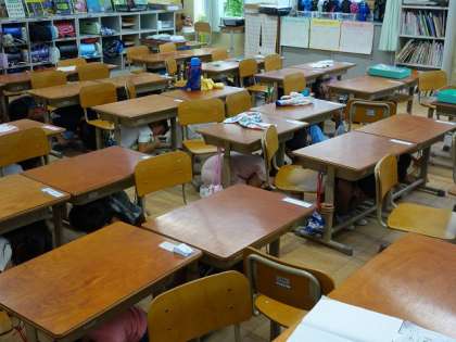 1年生の教室の模様。よーく見てくださいね。子どもたちが見つかりましたか?