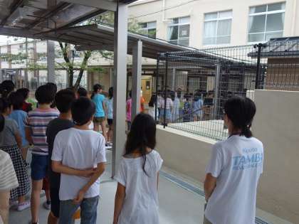 本校では,門を出て避難する訓練も行っていますが,今日は何故か昇降口に避難経路が集中してしまいました。