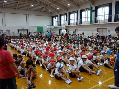 全員が体育館に揃うまで6分以上かかりました。通常の訓練ですと,5分を切るのですが,工事の関係や,雨天の関係で,至る所で渋滞が起こりました。
