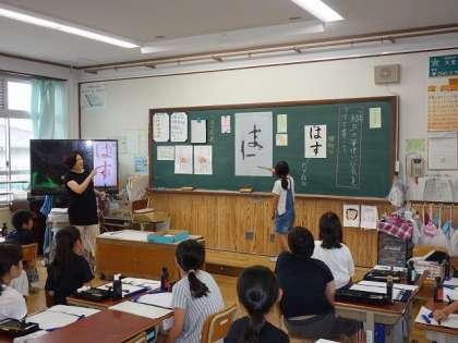 先生が書いた「は」「す」という字を,みんなで検討。