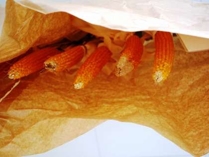 気になるのは,実の方です。「実はどこ?」と聞きますと,廊下にぶら下げられていました。既に1回ポップコーンを作ったそうです。