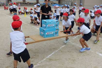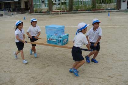 お互いに声をかけながら,落ちないように気を付けて運びます。