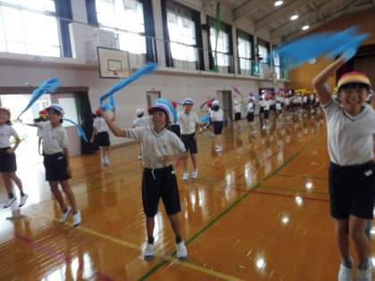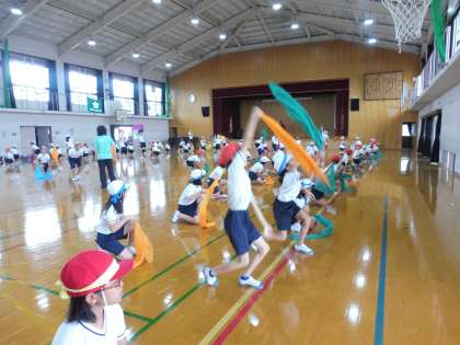 それぞれの色の布を持って踊ってみました。とってもきれいです♪