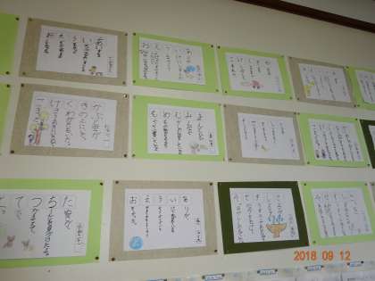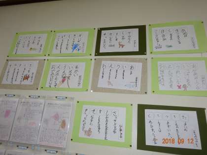 「あいうえお」や「あかさたな」を使って,文を作りました。大人は「う〜ん・・・」と考え込んでしまいますが,子どもは・・・あっという間に考えていました。おそるべし・・・子どもの発想力!!