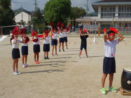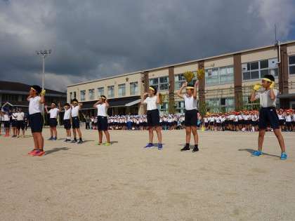 応援の練習もしました。団長の精いっぱいの声のエール交換。カッコイイ〜