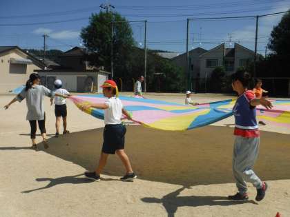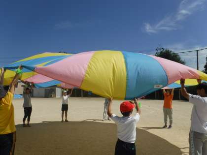 給食調理員さん,管理用務員さん,事務職員さん,栄養教諭のM先生もそらいろバルーン!に参加してくださいます。19日に一緒に練習をしました。終った後は,管理用務員さんがバルーンの破れているところに気がついてくださり早速補修してくださいました。そらいろの子どもたちは,いつも教職員のみなさんにあたたかく見守っていただいています!ありがとうございます!