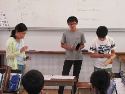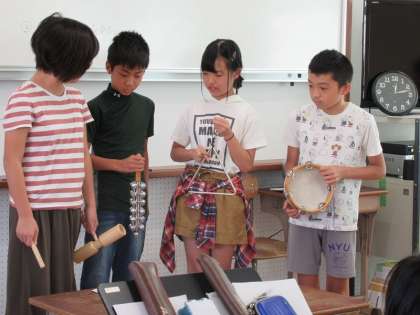 音楽の学習でリズムうちの合奏を行いました。自分たちで決めた楽器,自分たちが決めたリズムで,自分たちの音色を奏でます♪♪