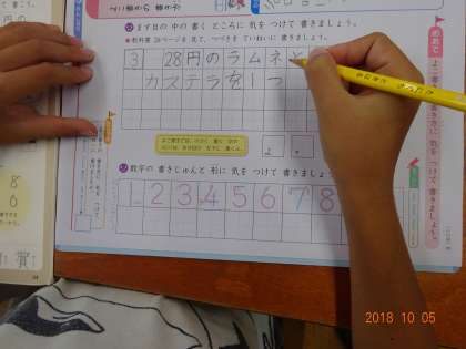よい姿勢で,文字の練習をしています。見ている方も気持ちいいですね!