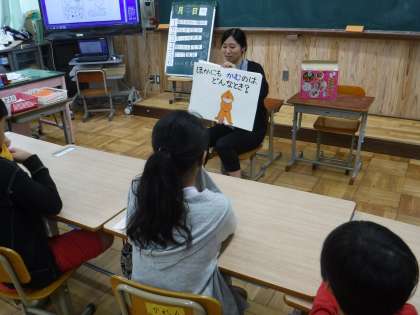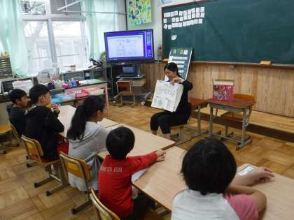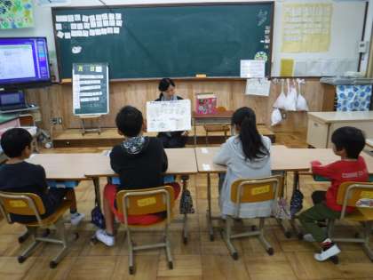 今朝は,栄養教諭のM先生が「カム カム カミー」という食べ方がわかる紙芝居を読んでくださいました!自作の紙芝居です。一口30回しっかり噛んで食べるといいとわかって早速,今日の給食の筑前煮をよく噛んで食べました。