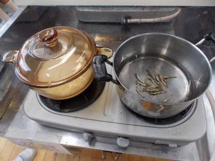 ご飯は、透明なお鍋を使って炊き,中の様子も観察しました。