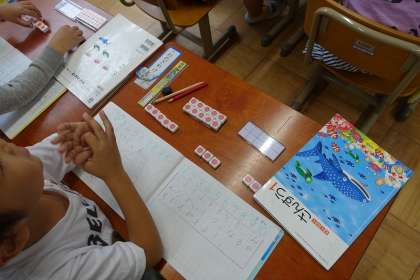 算数の学習では,3つのかずのけいさんの学習を行っています。