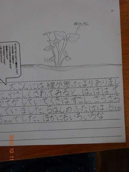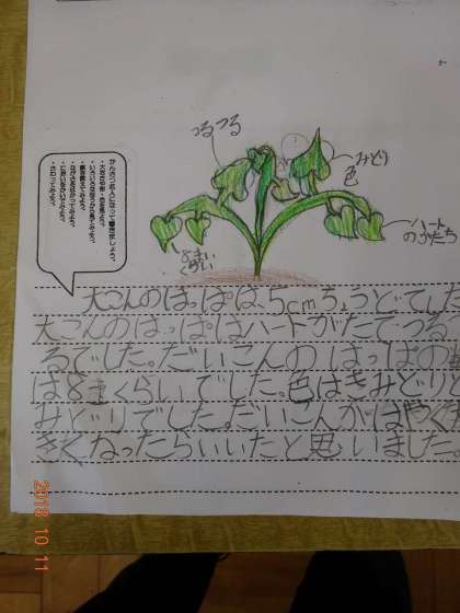 大根のかんさつをして,気づいたことや,感じたことを見つけたよカードにまとめました。