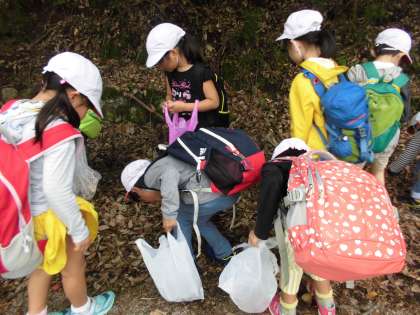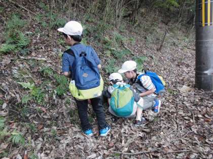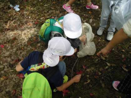 子どもの楽園までの道中で,秋を見つけて拾っています。