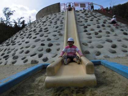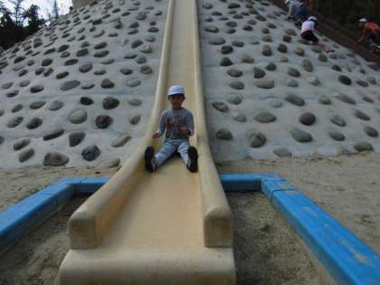 実はこの滑り台,とっても急なのです。