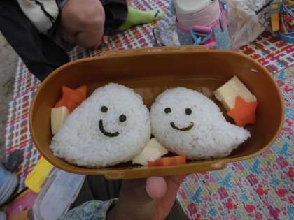 子どもたちのお弁当を見て回っていると,秋を感じるお弁当を見つけました。