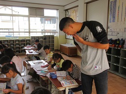 ALTの先生に,アルファベットの読み方を教えてもらいました。