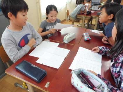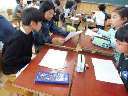 国語科で「ごんぎつね」の学習をしました。ごんや兵十の行動や気持ちの変化をとらえながら物語を読んでいきました。学習の最後には,それぞれが考えた物語の続き話を交流しました。