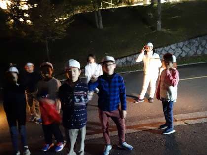 夜の道をみんなでテクテク歩くだけのようなので、面白いんかなー と思ったのですが、意外に子どもたちはキャッキャしながら歩いていました。