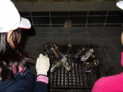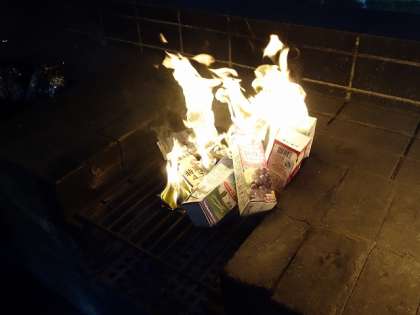 パックが燃え切って、アルミに包まれたパンが姿を現しました。