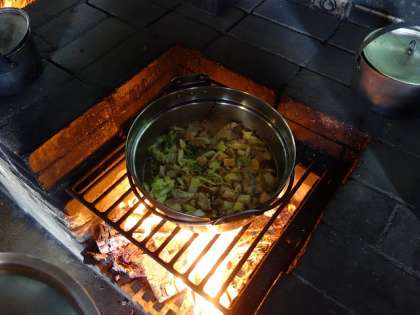 野外炊飯 すきやき風煮