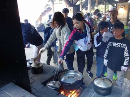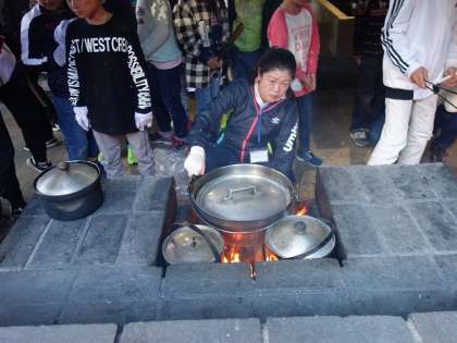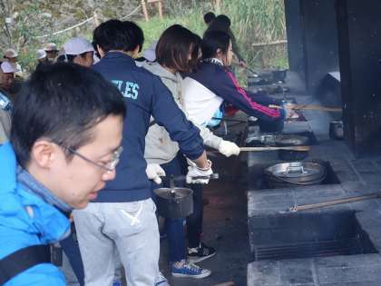 ちょっと時間が押してきたのか、やたら先生やボランティアさんたちの動きが目立つように。学年主任のI先生から、「今日は、精一杯手伝ってやってください。明日は、一切野外炊飯では手を出さないでください」という指令があったのです。