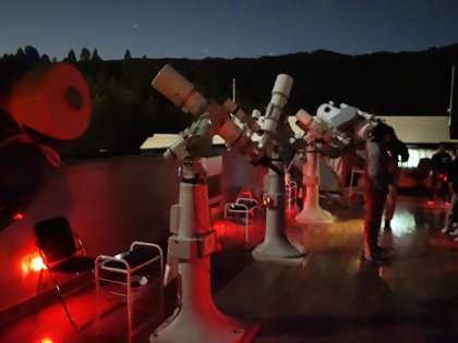 7時過ぎから、天体観測に出かけました。出かけたといっても、宿泊施設の屋上にある天体観測場です。