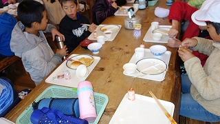 バタバタしていたら、朝食の様子を撮影するのを忘れていました。思い出して、あわてて撮ったのですが、ほとんどの子が「ごちそうさま」状態。