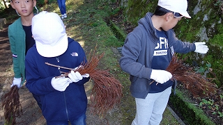 杉の枯葉をさっそく探しに行っていました。かまど係の子たちです。