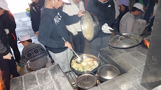 鍋が煮えてきたのか、ルーを入れるグループが続出。このペースなら11時30分ごろには食事ができるのでは・・・