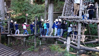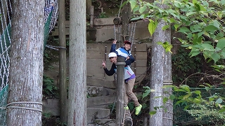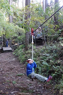 ワイヤーにぶら下がる、これ、子どもたち好きですねー。