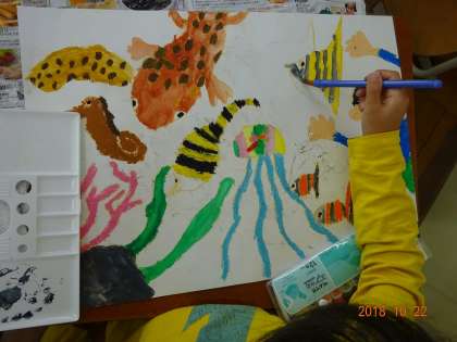 「生き物とわたし」の作品も,あと少しで完成です。11月4日の文化祭で展示しますので,ぜひ見に来て下さいね。