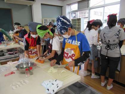 にんじん,ピーマン…調理実習前は「苦手やし,嫌やわあ…」とあまり乗り気ではない子が多かったのですが,自分が調理をすると,おいしい野菜に早変わり!