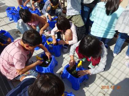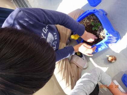 すいせんの球根を植えました。球根を植える土の深さは,8〜10センチ位,植付け時期は9〜11月で,花が咲くのは12月〜2月頃だそうです。「寒咲きすいせん」という名前の通り,寒い時期に咲くのですね・・・。