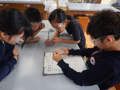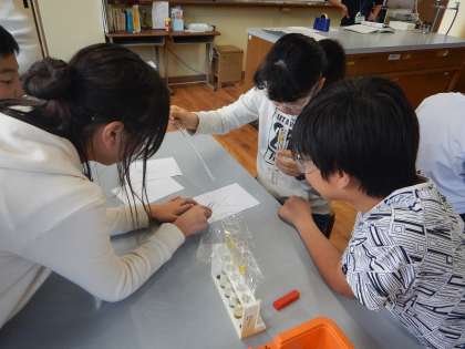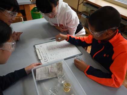 色が変わる瞬間をじっと見つめます…変わったら,「おおー!」と歓声があがります。