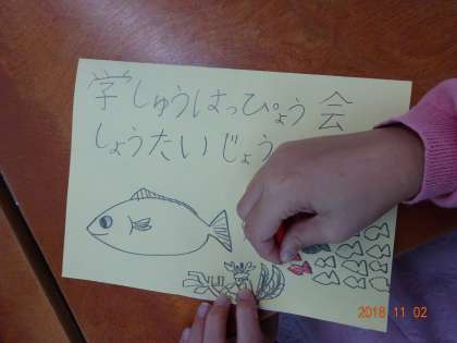 学習発表会の招待状を作りました。お家の方に向けて,自分の役と,頑張ることを書きました。ぜひ,学習発表会,見に来てくださいね!!