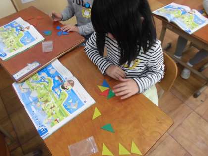 教科書を見て同じ形を作ります。が,なかなか苦戦しており・・・