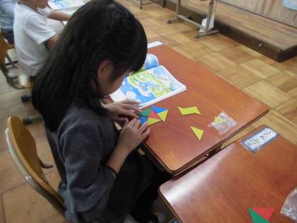 意外と難しいです。「家の屋根と魚の尻尾が一緒やし作りやすい。」と,共通点を見つけながら作り出す子どももいました。目の付け所がいいですね。
