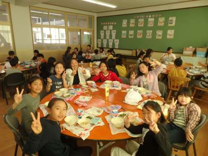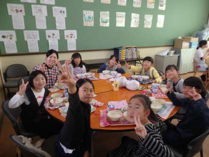 いつもの班のメンバーとのご飯もおいしいですが,こうやっていつもと違うメンバーで食べる給食もすごくおいしいですね。