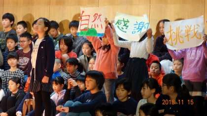 自分たちの1年の様子を,紹介しているんだ。これは,花背山の家のことですね。