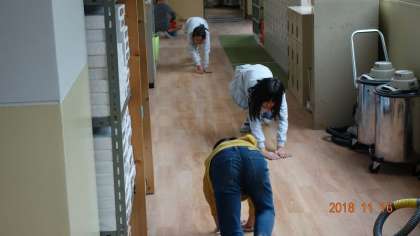 今日の掃除時間ふと廊下を見ると,子どもたちが丁寧に掃除をしてくれています。