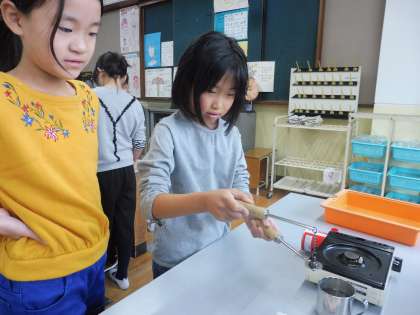 「熱する温度をもっと高くしたら,体積はさらに大きくなるのかな?」と,振り返りに書いている子もいました。「なぜ?」「こうだったら…?」と,しっかり考えている子どもたちに感心しました♪