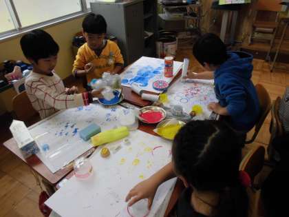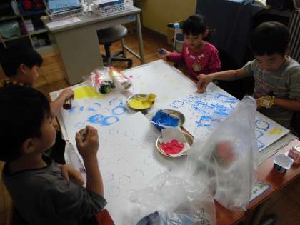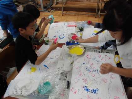 野菜や洗濯ばさみなど,いろいろなものをぺたぺたぺったん!