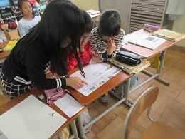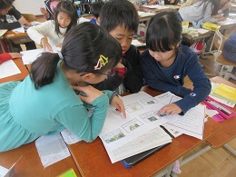 それぞれの工程の説明の紙を読みながら,工場で働いている人がどんな風に漬け物を作っているのかを考えました。