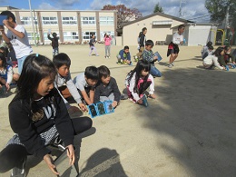 理科「太陽の光をしらべよう」の学習では,手鏡を使って光の進み方について調べました。