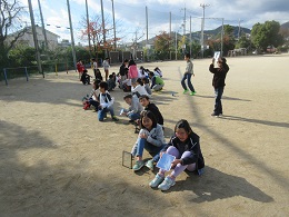 学習問題について予想した後に,実際に運動場で調べてみると,光がまっすぐ進んでいることに気づくことができました。