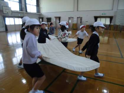 班の友だちと協力してマットの準備をします。