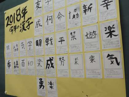 みんなで1年をふり返り,それぞれ漢字一文字で表しました。