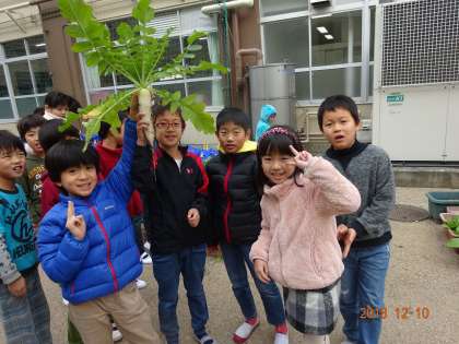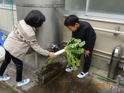 寒い中,収穫した大根を水で洗いました。「さむいわ〜」「手が凍る」といいながら,洗っていました。