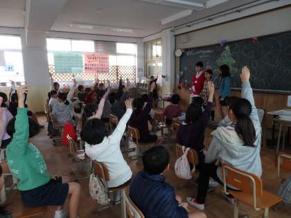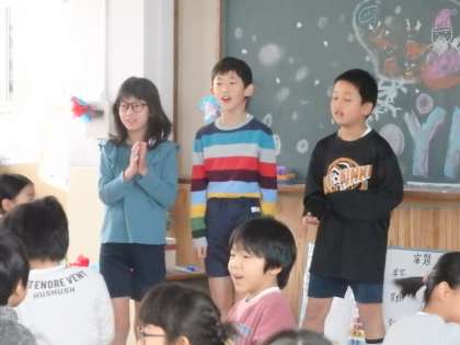 おにの人が外に出ている間に,誰かと誰かが席を代わっておいて,それを当てるゲームです。