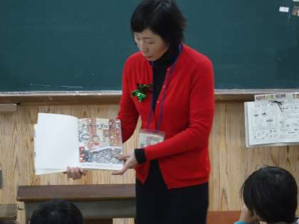 PTAサークル おはなしの会の方々が今月も楽しいお話の読み聞かせに来てくださいました!「ぬくぬく・ユッキーとダルマン・サンタクマースがこないわけ」の3冊を読んでくださいました。
